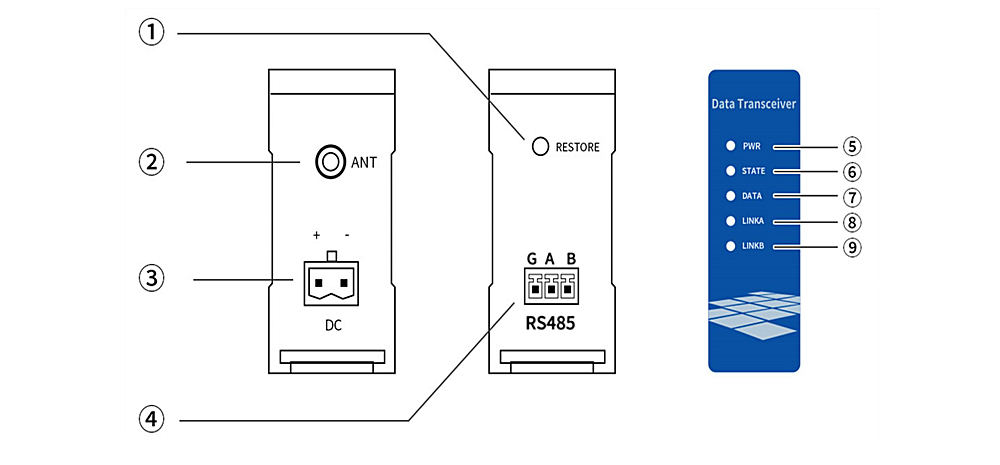 | 1 | Restore | Restart/factory reset button | Short press to restart, long press 5S device to restore factory |